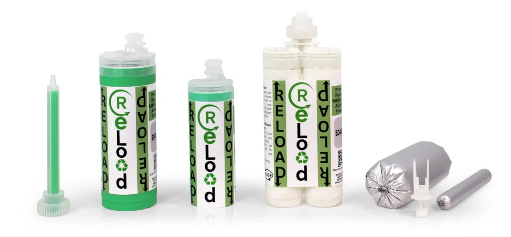 ReLoad takes proven two-part MMA and epoxy chemistries and puts them into foils that live inside a reusable cartridge shell. Instead of throwing away full plastic cartridges every time, you keep the shell and swap the foils, using your current dispensers and mix tips. No new gun required.